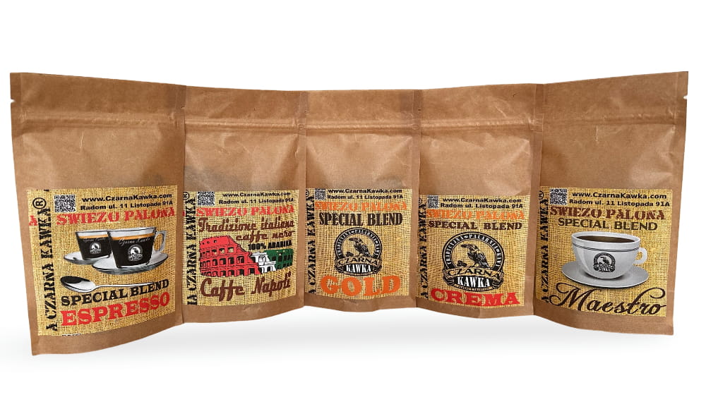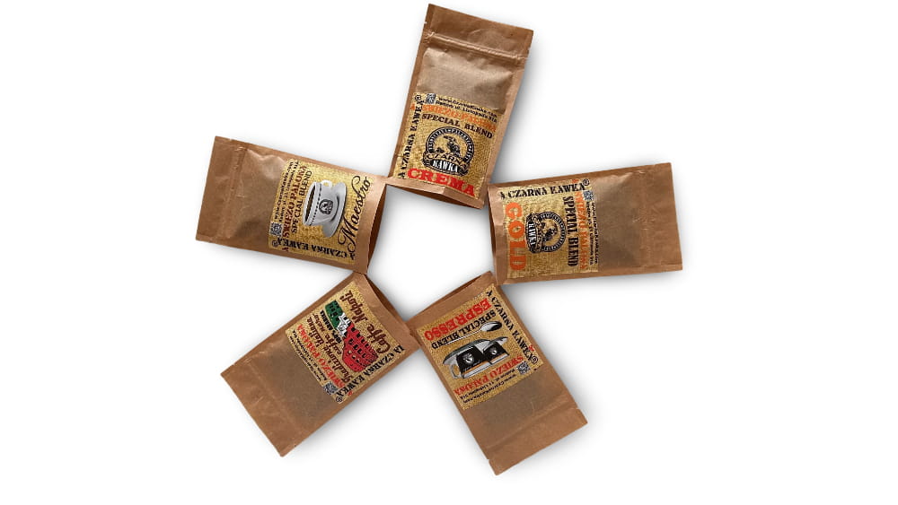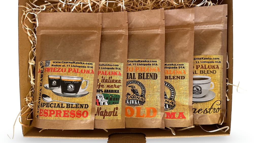 Zestaw próbek Czarna Kawka BLEND to zestawienie pięciu około 60g paczuszek różnych rodzajów świeżo palonych kaw z naszej oferty. Z opakowania uzyskasz ok 2-3 filiżanki aromatycznego naparu. Kawy zapakowane są w tekturowy kartonik. Zestaw dla niezdecydowanych :-)